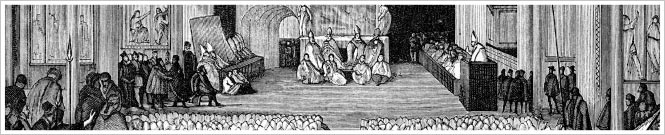 The argument was hailed in the council as of Inspiration only; the party for "Scripture alone," surrendered; and the council at once unanimously condemned Protestantism and the whole Reformation as only an unwarranted revolt from the communion and authority of the Catholic Church; and proceeded, April 8, 1546, "to the promulgation of two decrees, the first of which enacts, under anathema, that Scripture and tradition are to be received and venerated equally, and that the deutero-canonical [the apocryphal] books are part of the canon of Scripture. ...