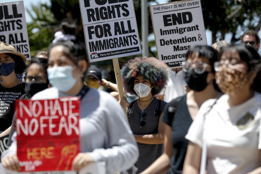 Hundreds of people rallied in downtown San Diego Saturday, loudly calling on the government to release migrants from the Otay Mesa Detention Center — a demand that has intensified in light of the highly contagious coronavirus.