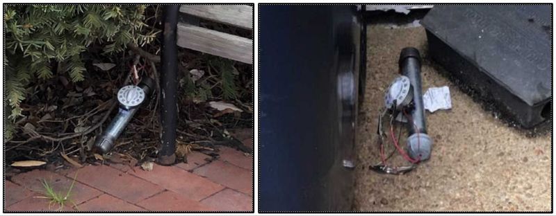 The pipe bombs were placed near the Democratic National Committee building (left) and the Capitol Hill Club (right). The bombs were discovered on Jan. 6, 2021.FBI photos
