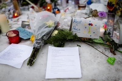 A print out of a poem allegedly written by Renee Good is displayed at a makeshift memorial in Minneapolis on Thursday, Jan. 8, 2026, at the site where she was shot and killed by an ICE agent.