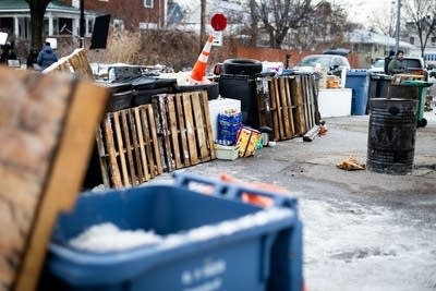 Barricades block 34th Street in south Minneapolis on Thursday, Jan. 8, 2026, the day after Renee Good was shot and killed by an ICE officer on the 3300 block of Portland.