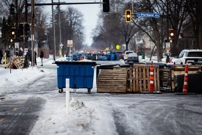 Barricades block Portland Avenue in south Minneapolis on Thursday, Jan. 8, 2026, the day after Renee Good was shot and killed by an ICE officer on the 3300 block of Portland.